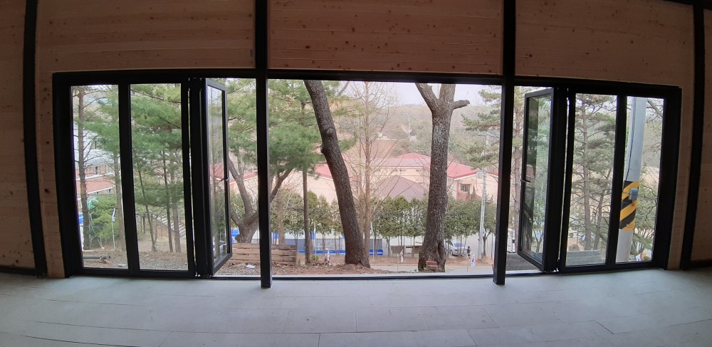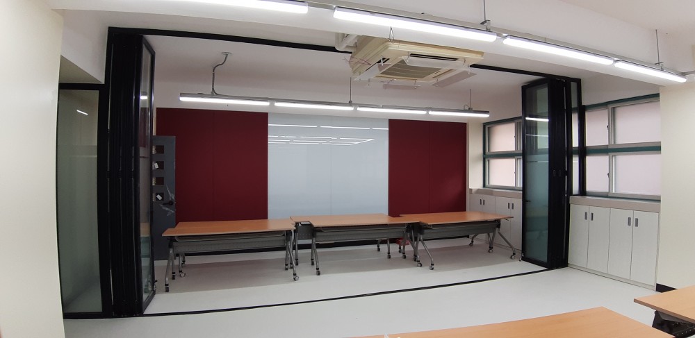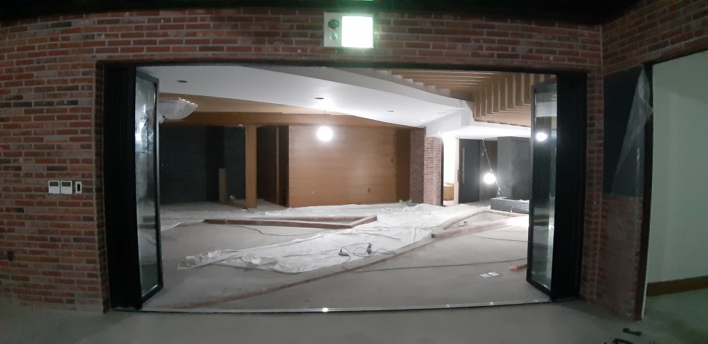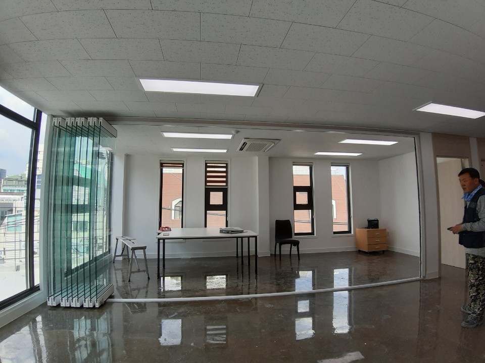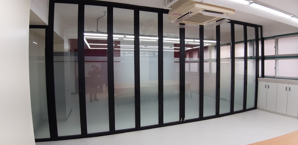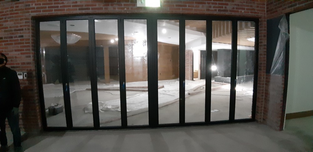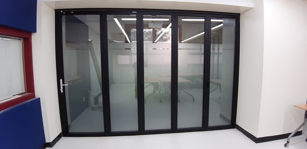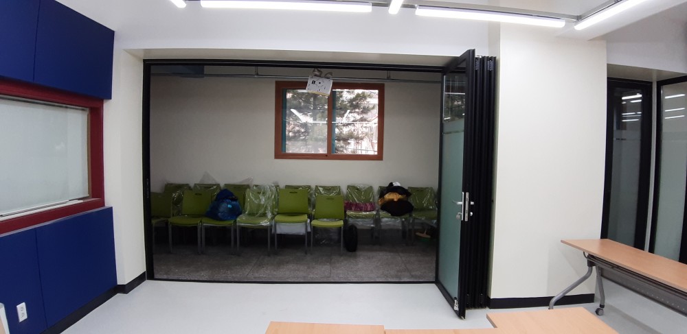 학교 폴딩도어 설치 사진 입니다