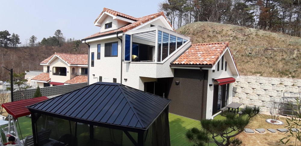 여주시 천송동 전원주택 폴딩도어및 캐노피 설치 사진 입니다